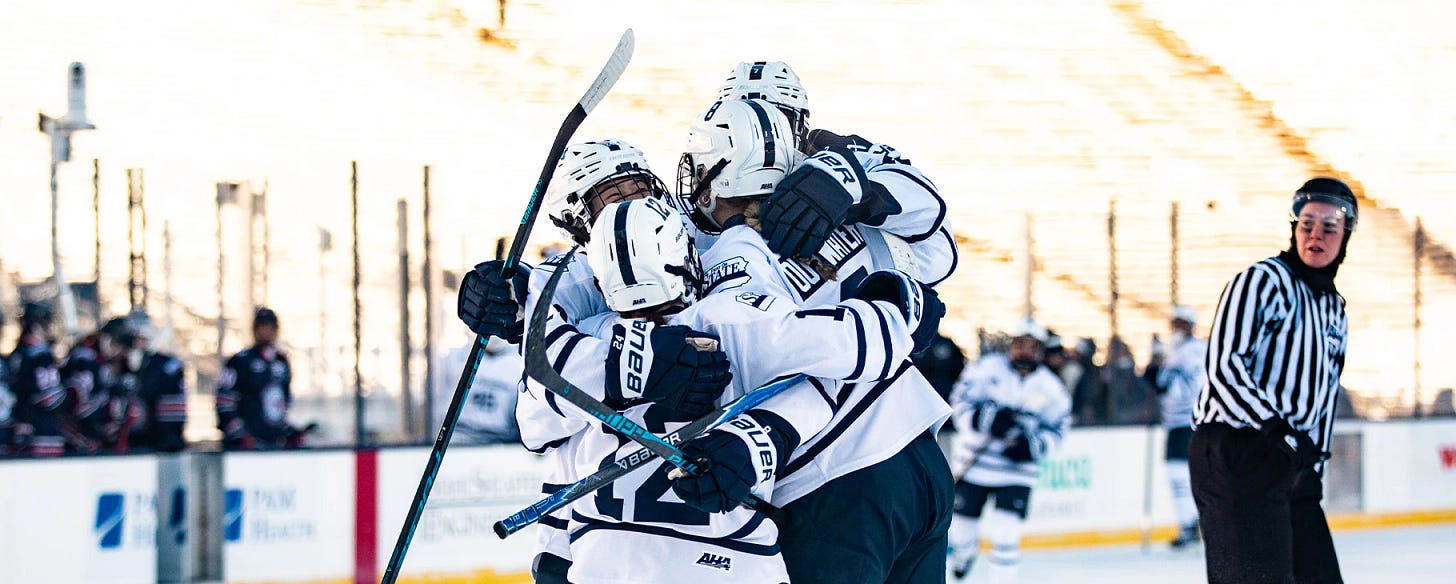 One of the highlights she shared from her time there so far was playing in an outdoor game at Beaver Stadium. Over 100 years of college football history, and there was Grace Outwater skating on that ice in front of the biggest crowd her team had ever played in front of. She described it as one of the coolest experiences of her career, and honestly, it’s hard to imagine it being anything else.